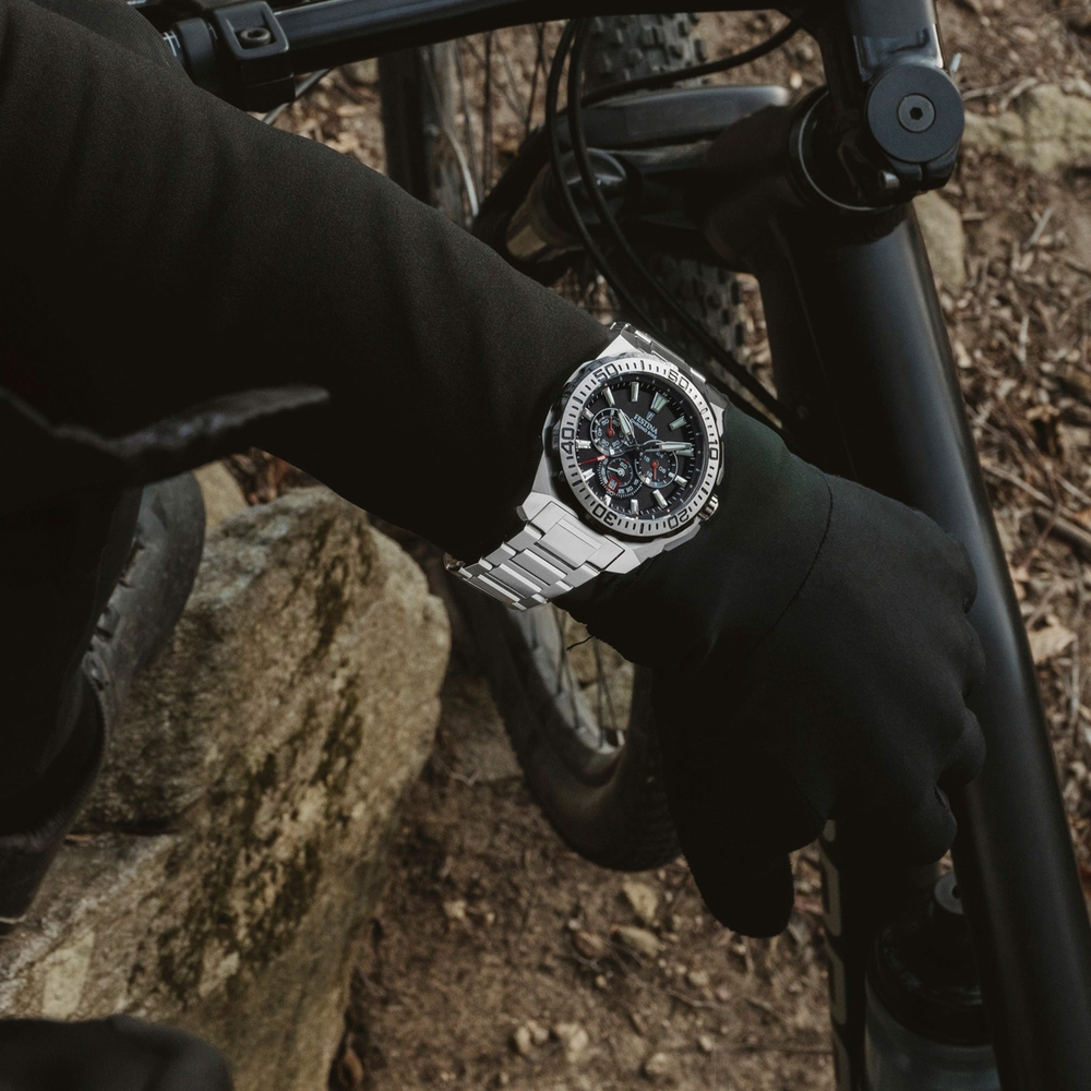 Its mineral crystal glass protects the dial, while the 316L stainless steel strap provides a comfortable and secure fit. With a water resistance of 20 ATM, it is a watch ready to withstand any challenge, whether on the road or in the water. Its dynamic and sporty design, inspired by a passion for cycling, makes it an essential piece for those looking for style and performance on their wrist.