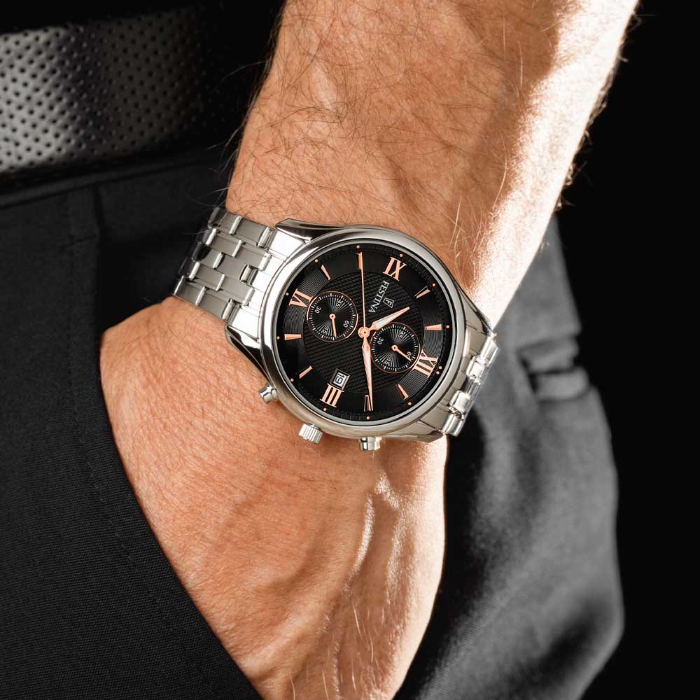 Dial Black Dial Chronograph with lumi indices and rose gold roman numerals indices