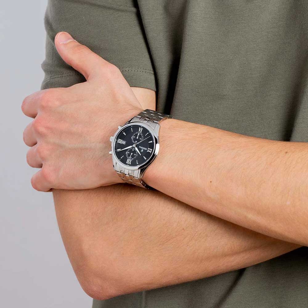 Dial Black Dial Chronograph with lumi indices and silver roman numerals indices