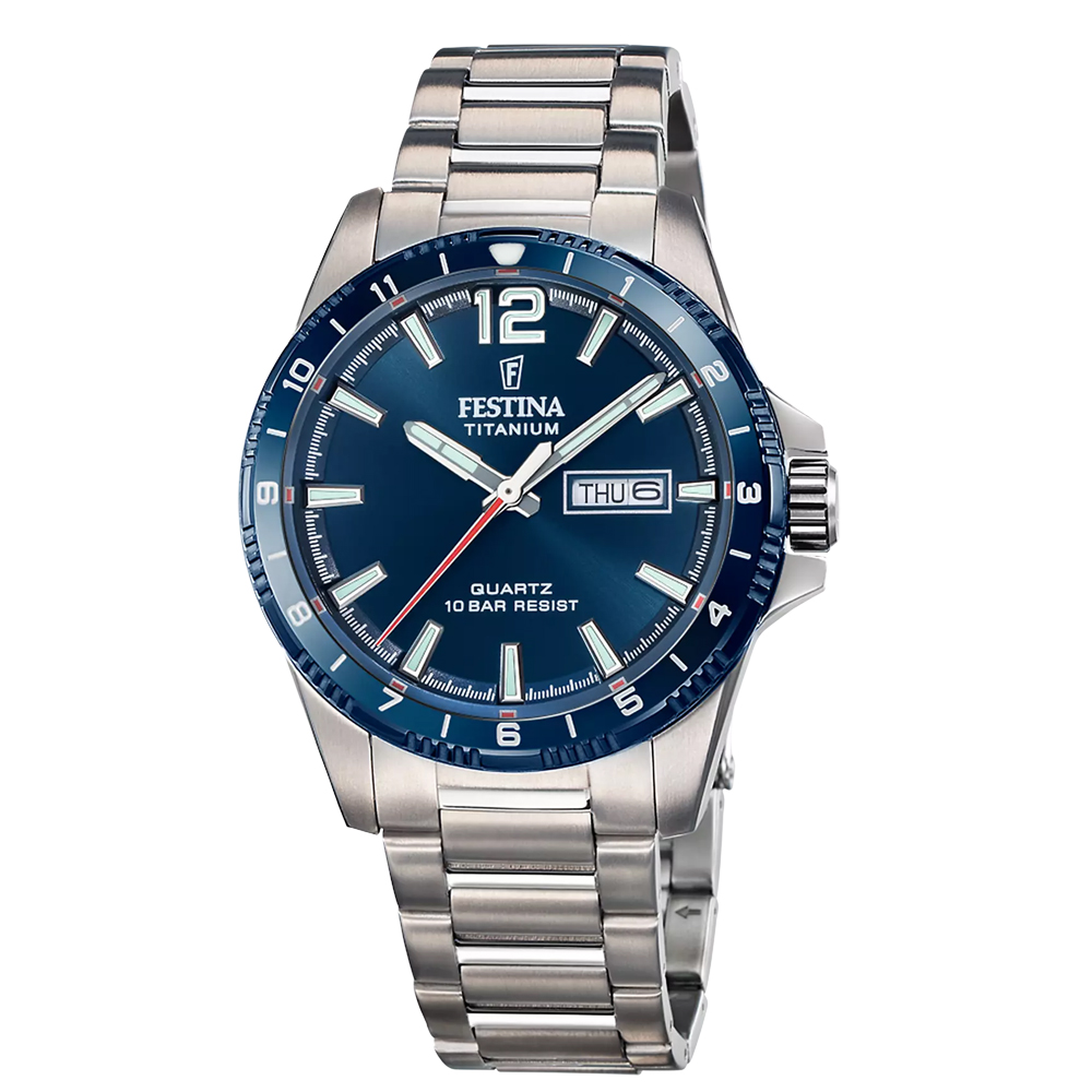TITANIUM F20698/4The Festina Titanium watches are a true work of art. This gents 43mm black dial features a black bezel and titanium case and bracelet and has a mineral glass. Water resistant to 100 meters.This watch is a testament to the highest quality and sophistication. Additionally, its titanium bracelet makes it a durable and a resistant accessory.